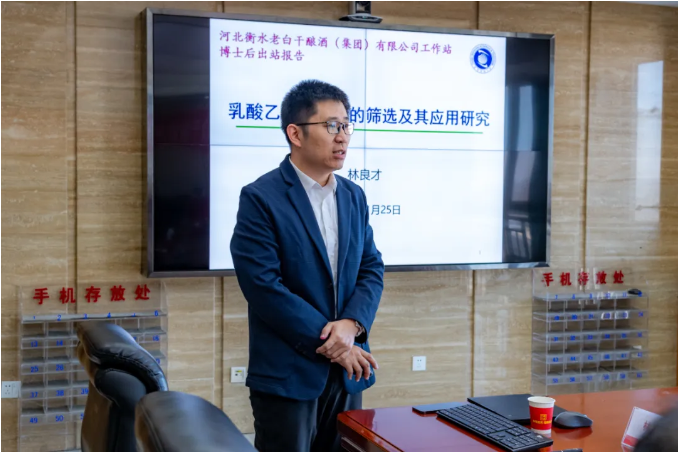 2025年11月25日,衡水老白干與天津科技大學聯合培養的在站博士后林良才出站報告會在酒都大廈1308會議室舉行。